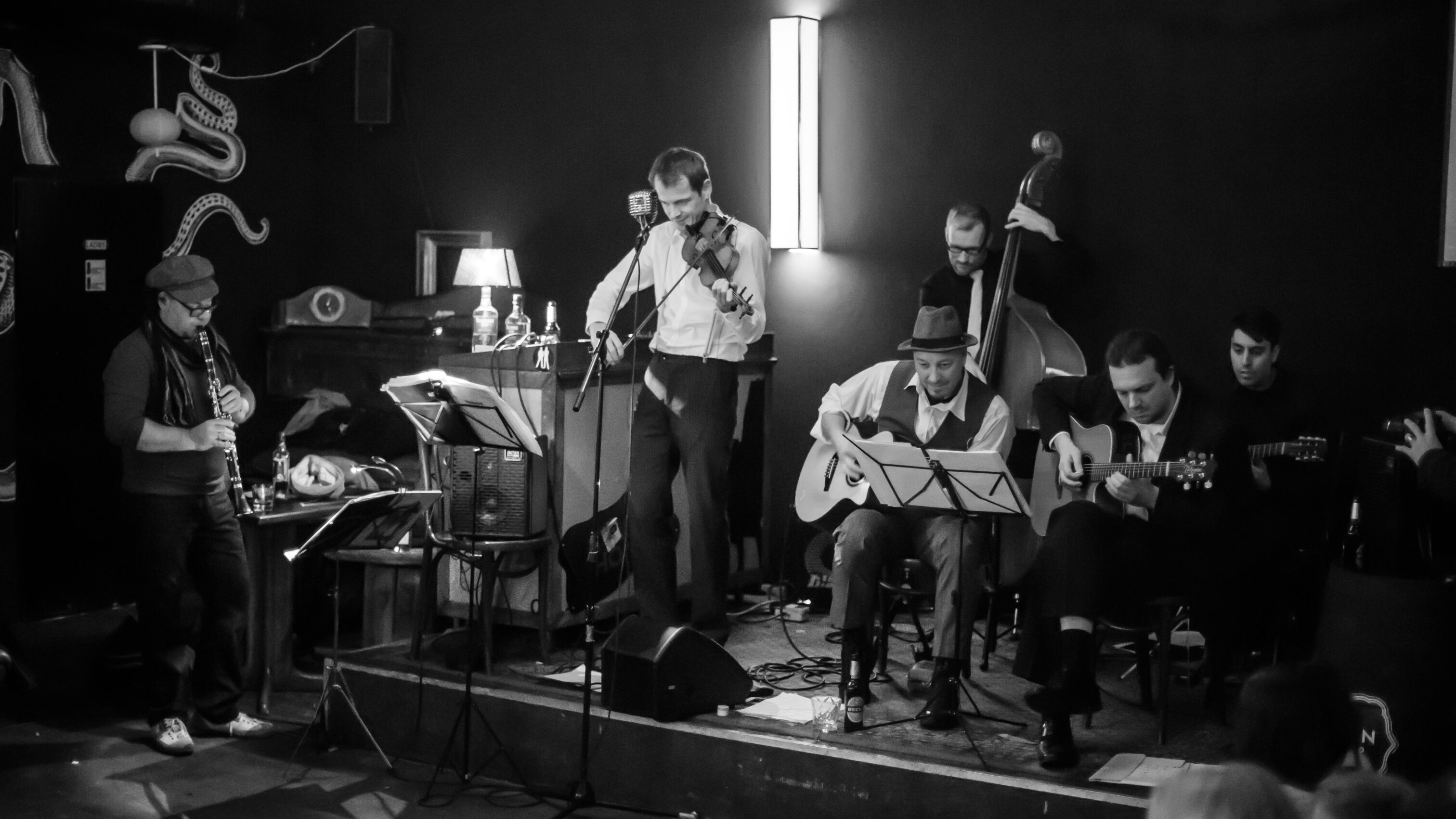Die Djangonauten wurden 2015 von dem Hamburger Violinisten Chris Drave ins Leben gerufen und spielen in kleiner Trio-Besetzung oder als volles Sextett.
